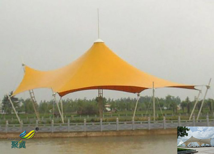 2.極具表現力的建筑形態:景觀張拉膜具有特定功能的建筑都可通過立意得以表達,景觀膜結構的獨特外形體現了建筑自身的自然美感。這些建筑形態本身和與其相協調的傳統建筑一起構成了令人興致盎然的地面標志性建筑。優秀的膜結構設計是結構與外形的有機融合,使其顯得了出類拔萃,同時與自然環境、歷史及現代的城市景觀有機結合。