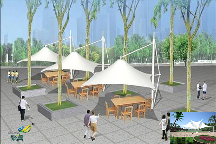 1、景觀膜結構能夠覆蓋大跨度空間,因為重量輕,膜結構中利用的薄膜材料,每平方米重量只要一公斤。加上電纜,鋼結構高強度材料的采取,使膜結構跨度大空間,構成開放的無柱大跨度結構體系