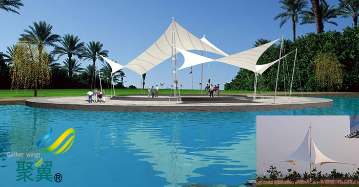 景觀膜結構一般采用預應力拉索體系,利用邊鎖的拉力及膜材的形狀構成的造型,盡可能減少結構體型對膜材視覺的影響,膜材經常采用彩色膜,以體現膜結構千變萬化的浪漫情懷! 隨著建筑空間觀念的日益深化以及科學技術的不斷提高,回歸自然“沐浴自然之溫馨”已是現代景觀工程的趨勢,它必將為促進人們與自然和諧共處發揮重大作用。利用膜結構的輕巧,別致的造型建造各種半封閉,全封閉的大型空間,使其形成全天候的建筑空間,提供防風雨,防日曬等人工環境,并有較好的廣告標識效果,因此是步行街改造和新建的絕佳選擇。