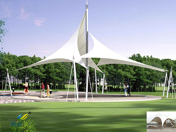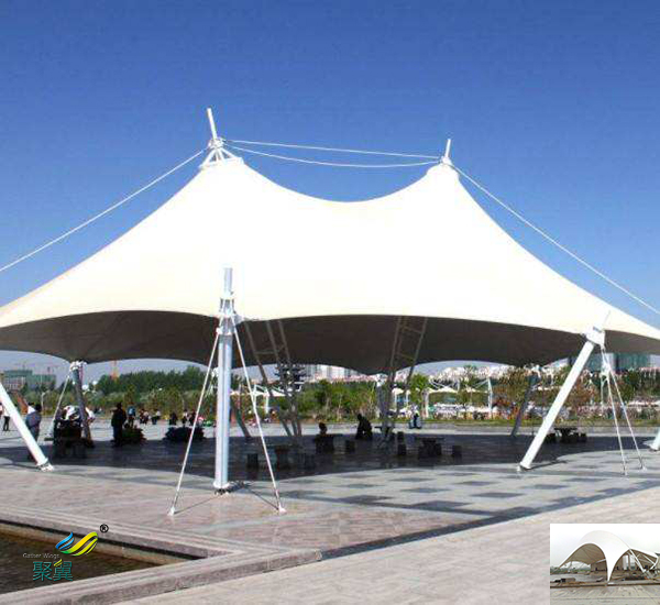 三點,膜結構施工周期短。膜片的裁剪制造、鋼索和鋼結構的制造均在工廠內完結,安徽景觀膜結構在施工現場僅僅鋼索、鋼結構及膜片的銜接安裝及張拉的進程,因此在現場的施工安裝比較方便且安全。