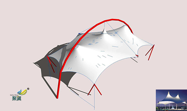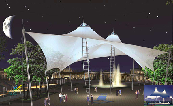 三點,膜結構施工周期短。膜片的裁剪制造、鋼索和鋼結構的制造均在工廠內完結,安徽景觀膜結構在施工現場僅僅鋼索、鋼結構及膜片的銜接安裝及張拉的進程,因此在現場的施工安裝比較方便且安全。