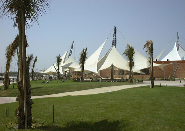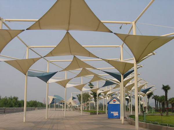 景觀膜結構之所以可以如此迅猛之趨勢,膜材本身所具有的特點是功不可沒的。一個城市的建筑決定一個城市的經濟發展,而一個城市中心的景觀即反映一個城市的民族風情,同時也是一個城市的發展標志。所以景觀設計不僅要具有可觀賞性、藝術價值,而且還能使觀賞者與景觀產生共鳴聯想。
