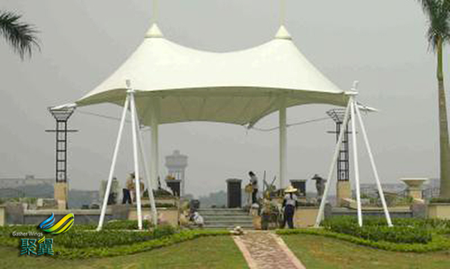 嘉興帽頂膜結構筑物屬于半永久性的建筑。現在世界上使用最早的膜結構車棚建筑已有30多年的歷史,仍在使用中。嘉興帽頂膜結構的鋼質骨架只要做好防腐涂裝,維護比傳統建筑少,這樣就可以大大減少人工的維修費用,便可永久使用。建筑用的嘉興帽頂膜結構膜材是一種高級的復合材料,具有良好的力學性能,強度高、耐老化,只要結構設計合理,膜布加工的車棚建筑的安全使用壽命可長達50年。