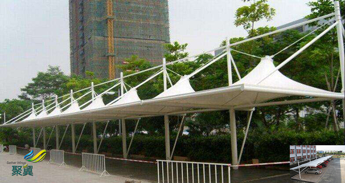 膜結構車棚雖然是采用新型的材料,但是在使用過程中,承受著很大的壓力。因為膜結構車棚的形狀和傳統車棚的形狀不同,膜結構車棚的抗壓能力是靠膜表面不同的形狀要實現的,這也就是為什么膜結構車棚有各種各樣的形狀了。