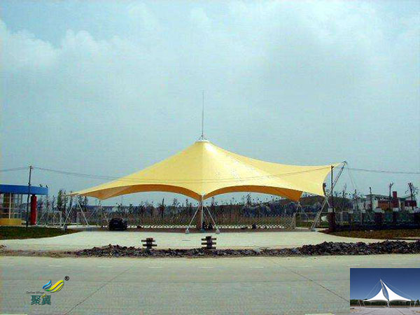 1、張拉景觀鋼膜結(jié)構(gòu)自潔性-自始至終保持潔白美麗