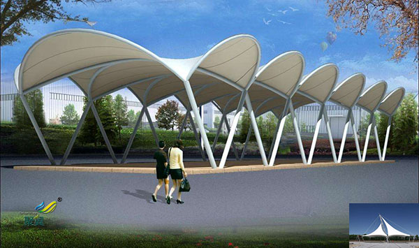 2、張拉景觀鋼膜結(jié)構(gòu)透光性-充滿自然光的明快空間