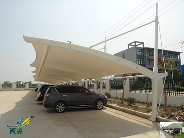 膜結構汽車棚作為一種新型的時尚型停車棚,以其不同的優點受到社會各界、企事業單位的歡迎。