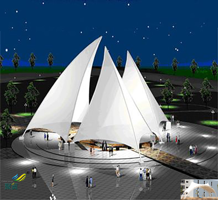 舞臺(tái)膜結(jié)構(gòu)是隨著現(xiàn)代科學(xué)技術(shù)發(fā)展起來(lái)的全新建筑技術(shù)表現(xiàn)形式,是材料科學(xué)、建筑學(xué)、結(jié)構(gòu)力學(xué)以及現(xiàn)代環(huán)境學(xué)高速發(fā)展的綜合產(chǎn)物。 20世紀(jì)60年代隨著現(xiàn)代柔性建筑材料的發(fā)展,建筑師們從帳篷著一最古老的簡(jiǎn)單建筑結(jié)構(gòu)出發(fā),構(gòu)造出了魔幻般的形式—膜結(jié)構(gòu)。它可以構(gòu)成單曲面,多 曲面等不同建筑結(jié)構(gòu)形式,滿足了建筑師們對(duì)建筑與美學(xué)高度統(tǒng)一的要求。