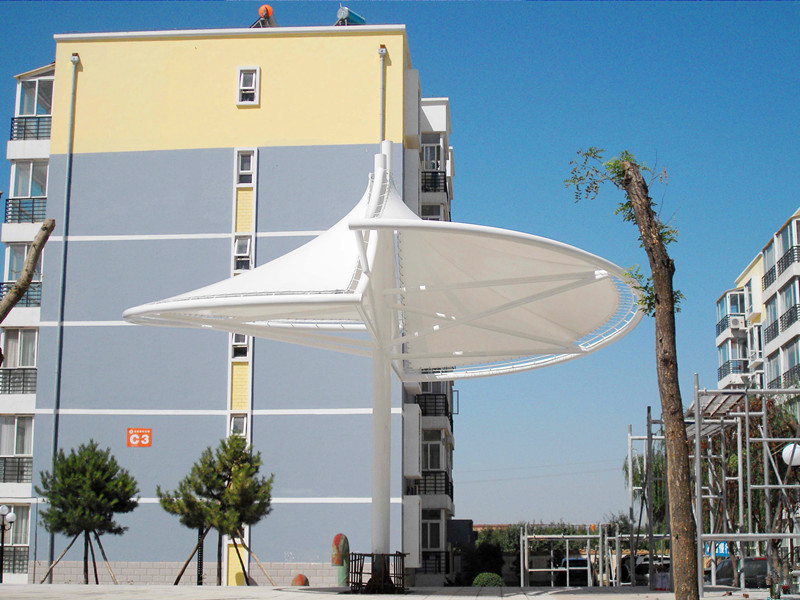 膜傘的結構自重輕,具有良好的造型和自潔性,施工簡單快捷快捷,適合以下各種場所使用:大型體育館、門廳、公園、商業街、高檔小區等。