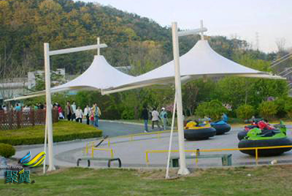 多色膜結構傘不但可以防風雨而且可以避日照,用途多樣化。頂篷可以起到遮陽的作用,阻擋夏日毒辣的日照,可控制室內溫度的上升,冷氣效果也大幅度提高,從而節約能源。多色膜結構傘是您感受家庭式花園或菜園樂趣和景觀賞景的好場所。可以種些季節性花草、食用小蔬菜,觀賞花草,蜂飛蝶舞,別有一番情趣。
