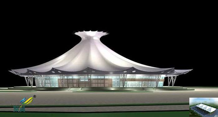 2.膜結(jié)構(gòu)建筑經(jīng)濟(jì)性:由于膜材具有一定的透光率,白天可減少照明強(qiáng)度和時(shí)間,能很好地節(jié)約能源。同時(shí)夜間彩燈透射形成的絢爛景觀也能達(dá)到很好的廣告宣傳效益