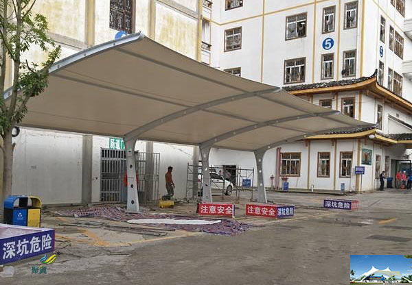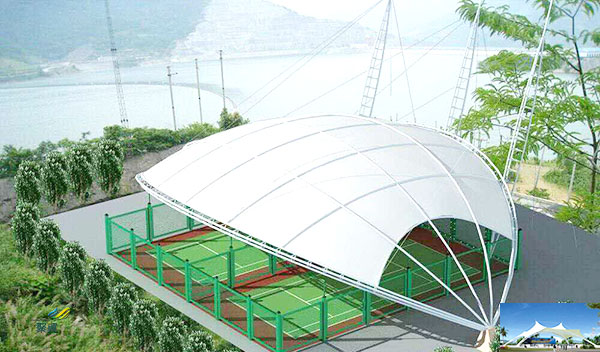 膜結構建筑張拉膜膜結構中所用的膜材、拉索、鋼結構都是在工廠加工制作的,可與基礎部分同時進行,然后將加工好的構件運送到現場進行安裝定位,然后張拉膜材即可,對于施工現場的要求較低,這也大大縮減了施工周期。