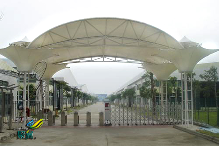 上海門廳膜結構雨篷是人們過往必經之地,是進入室內第一印象處,亦是體現室內裝飾的整體水準之一,一般門廳、走廊照明燈具一般選用小型的球形燈,扁圓形或方形吸頂燈,上海門廳膜結構雨篷規格,尺寸,大小應與客廳配套。有時也在門口處裝有射燈。上海門廳膜結構雨篷用燈應與其他房間有主,次之分.還要結合房屋裝修和業主的個人喜好幾個方面去考慮。