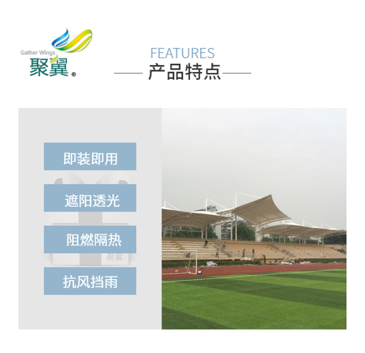 看臺棚膜結構的曲線曲率是其他建筑難以達到的,能充分體現(xiàn)自然美,藝術美,技術美,而且與周圍建筑環(huán)境相容性很強,大跨度一樣完美展現(xiàn)設計之美。