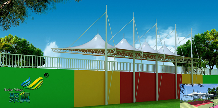 2.設計合理的膜結構能夠很好的對看臺進行遮陽、遮雨。