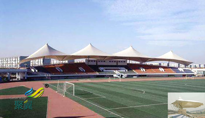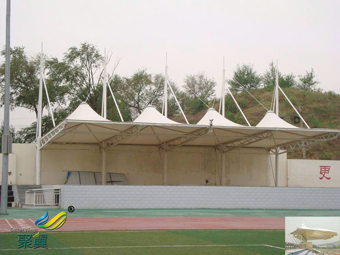 2、膜結構體育看臺建造施工工期短,膜結構加工制造都是在工廠內完成的,縮短了施工時間,從而也為企業節省了施工成內本。