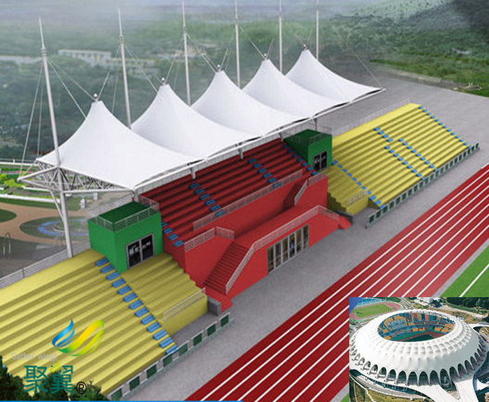 2、膜結構體育看臺建造施工工期短,膜結構加工制造都是在工廠內完成的,縮短了施答工時間,從而也為企業節省了施工成本。