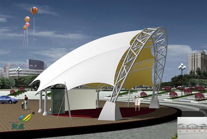 2、膜結構體育看臺透光效果好,自身采用的膜材透光效果好,可達8-15%,也符合國家的環保標準,在太陽的照射下不會產生發黃,變形等情況,而且不需要照明,節省了能源。