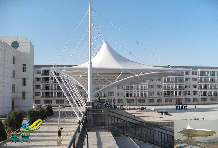 2、膜結構體育看臺輕量結構,抗災、救災威力大建筑膜材料與其他建筑材料相比要輕的多,屋頂采用了建筑膜材料的建筑物,具有極強的抗震性及良好的安全性。而且,在發生災害時,采用了建筑膜結構的多功能設施及體育館,其無柱而明亮的大空間,可以用來作為臨時的避難場所、急救中心、抗災指揮部等。因此,在危急之時,建筑膜結構建筑可以保護人們的安全。