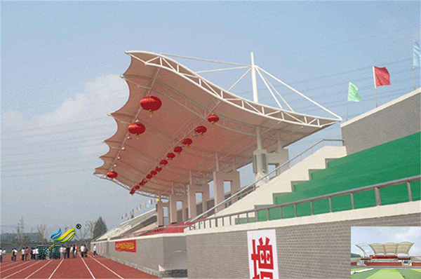 2、膜結構體育看臺建造施工工期短,膜結構加工制造都是在工廠內完成的,縮短了施答工時間,從而也為企業(yè)節(jié)省了施工成本。