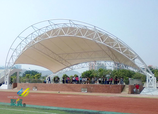 膜結構看臺設計理論:膜結構看臺產品想必大家都不會陌生,其中非常熟知的功能就是防水、防火和防霉,其強度比較高,比較耐磨損,使用的壽命也比較長重量比較輕盈,搬運又十分方便,膜結構看臺是可以伸縮的一種設施,膜結構看臺在不使用的時候可以收起來,不占地方也非常方便在有惡劣天氣的時候就**需要推拉篷了,伸展開來有一個較大的空間可遮風擋雨,不僅如此,膜結構看臺還可以遮擋陽光,對于夏天也是不錯的選擇。膜結構看臺廠家也說膜結構看臺的一定備著的戶外設施。 膜結構體育看臺特點:經濟實用美觀,鋼材+鋼索+高強度膜材;大跨度無遮擋視覺空間覆蓋;外觀新穎優美而精致,設計無限,時尚環保理念;膜結構看臺遮陽避雨,抗震阻燃,防紫外線;結構堅固,高強可靠的抗負荷載能力;膜結構看臺完美的細部處理,優質齊全的配件附件;高效的防腐,防塵,自潔功能;服務完善周全,現場施工過程簡便,快捷。