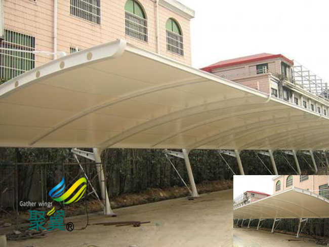膜結構車棚、停車棚設計中有效地結合結構、功能和美學,充分發揮膜結構形式的特點,解決結構形式與建筑功能之間的矛盾,統一結構機智的力學規律,空間的實用性和形式的美學原則,應該打破傳播,應打破傳統建筑設計程序中的“先建筑,后結構”的傳統。