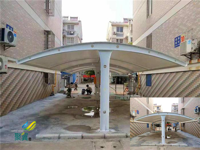 膜結(jié)構(gòu)車棚除了其實(shí)質(zhì)作用——保護(hù)車子之外,也被人們看成是一種藝術(shù)品,因膜結(jié)構(gòu)車棚獨(dú)特的外表越來(lái)越多地鑲嵌在現(xiàn)代建筑中,因此,膜結(jié)構(gòu)車棚也被稱為第四代建筑。