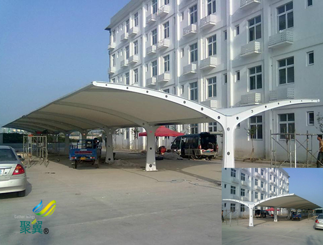 膜結構停車棚、張拉景觀膜結構安裝廠家,張拉景觀膜結構環保,膜結構車棚與傳統的停車棚相比,外觀更加美觀,膜結構停車棚、張拉景觀膜結構受歡迎的原因不僅是新的停車棚源于中國汽車的激蕩,而且膜結構停車棚安裝廠家,張拉景觀膜結構材料的藝術感也使其能夠取代傳統停車棚的地位。