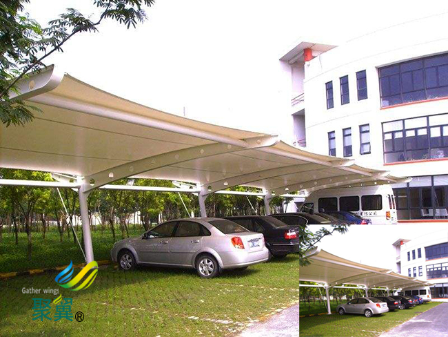 膜結構停車棚、汽車棚停車棚是一種新型膜材加鋼材建筑結構形式,隨著社會的發展,已廣泛應用于各大公共場所,基本可以說是隨處可見。對于膜結構車棚來說膜材的平整度關乎這整個造型的成敗,如何給膜結構車棚上膜、拉膜布更是一門技術活,稍不留意可能就會留下褶皺,聚翼膜結構廠家是專業設計和安裝膜結構車棚的廠家。