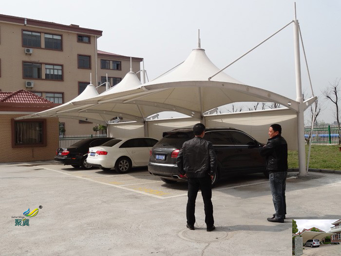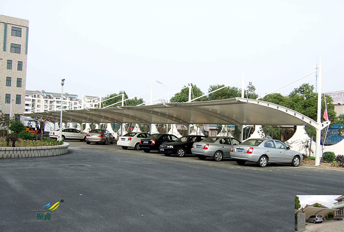 1、膜結構充電樁車棚耐用:由于高強度的出現,再加上張拉技術的應用,使膜結構車棚抵御風雨的能力是一般雨蓬之類不可比擬的。有的車棚采用永久性膜材,可使用三、四十年。特別是遇到劇烈的暴風雨天氣,膜結構建筑巍然不動,毫發不損。