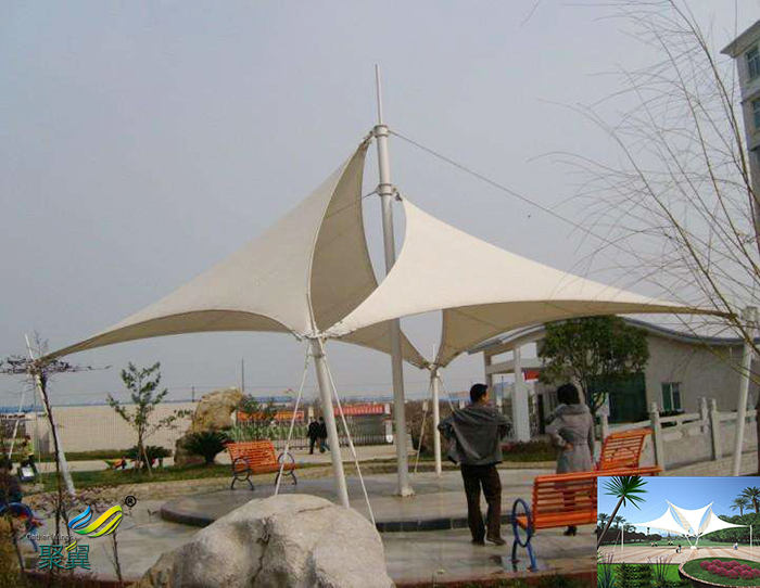 4、景觀膜結構膜材料表面加涂的防護涂層,具有耐溫的特點,而且本身不發粘,這樣落到膜材料表面的灰塵可以靠雨水的自然沖洗而達到自潔的效果。