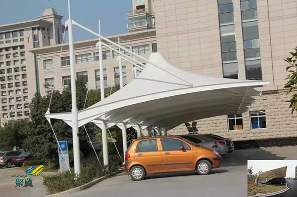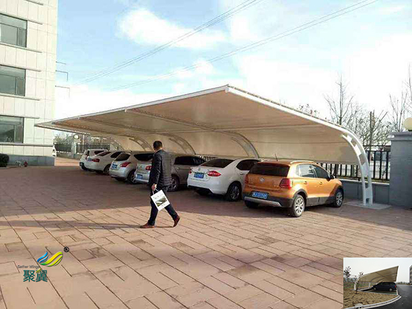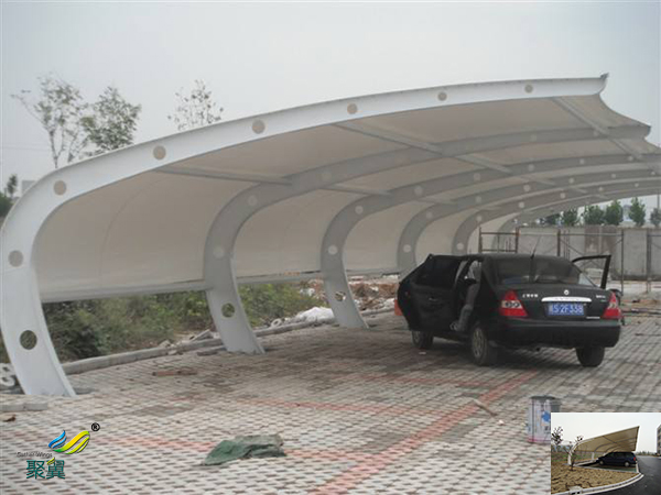 膜結構車棚的篷布材質是膜結構,而膜材的特點是強度高、耐久性好、防火難燃、自潔性好,不受紫外線影響,使用壽命長,一般15-30年。具有高透光率,透光率為13%,對熱能反射率73%,熱吸收量很少。正是因為這種劃時代的膜材料的發明,使膜結構車棚成為現代化的建筑。鑒與此,膜結構造型的停車棚在停車場建設中也以其優美的造型和實在的功能擔當重要角色,是您的愛車安身之所。