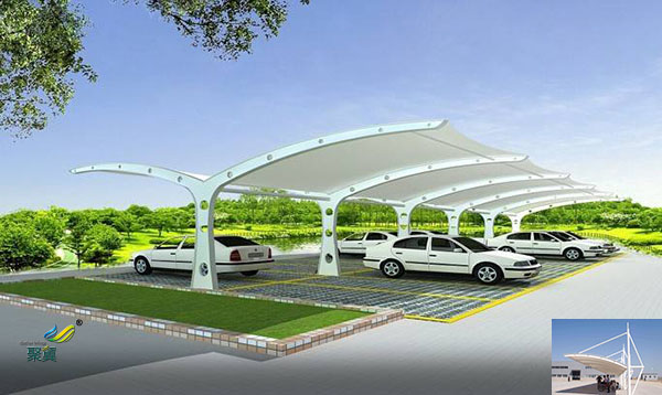 膜結構汽車充電樁停車棚輕便性:重量輕,絕對保證棚下人和物的安全。