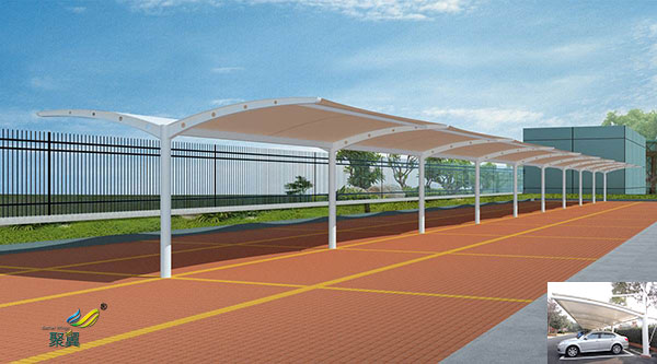 第四、自由獨特的造型,膜結構車棚造型多變,能夠適應不同風格建筑,更加新穎美觀,而且膜材料的色彩豐富、鮮艷,視覺效果非常好。相對于傳統車棚,它的美觀特性更是得到了充分的展現。