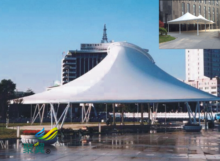 膜結(jié)構(gòu)車棚具有良好的受力特點——成為大跨度空間結(jié)構(gòu)的主要形式之一。膜結(jié)構(gòu)輕巧、別致的造型在停車場及候車廳的建設中擔當了重要角色,除了滿足防風雨、防日曬等基本功能外,并有較好的標識招攬效果,展現(xiàn)了人們個性化的一面。