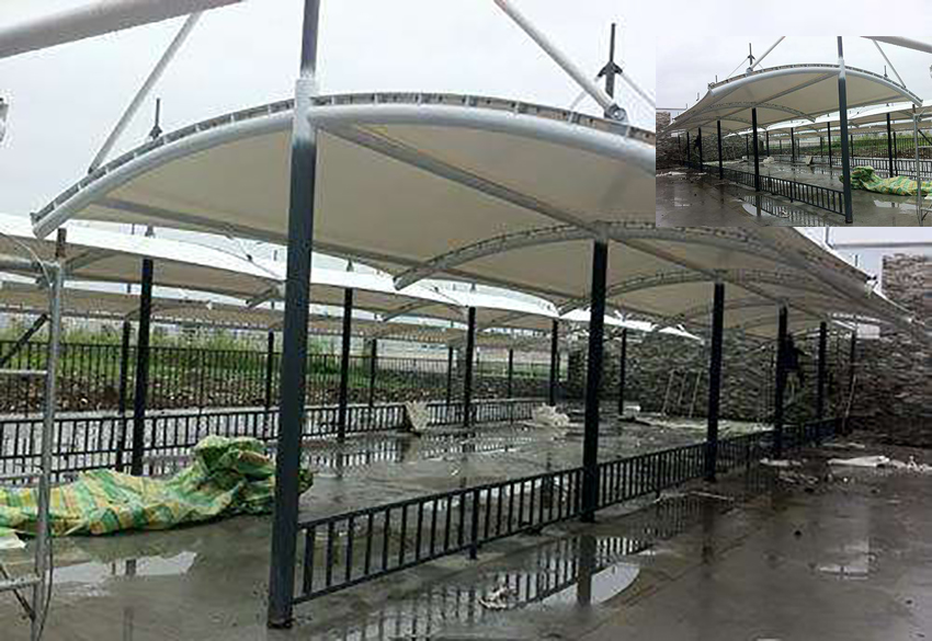 • 上海雙開式膜結構車棚自行車棚安裝案列流程