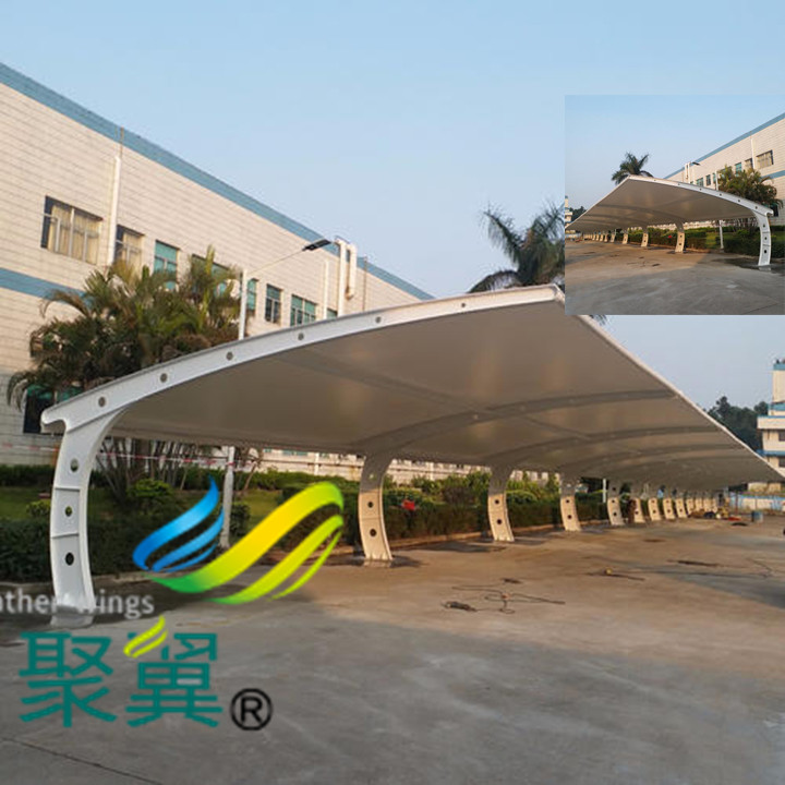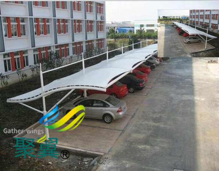 膜結(jié)構(gòu)車(chē)棚停車(chē)棚景觀遮陽(yáng)雨棚外觀優(yōu)勢(shì):裝飾環(huán)境。膜結(jié)構(gòu)停車(chē)棚美觀的外形,可裝飾環(huán)境,提升環(huán)境檔次。