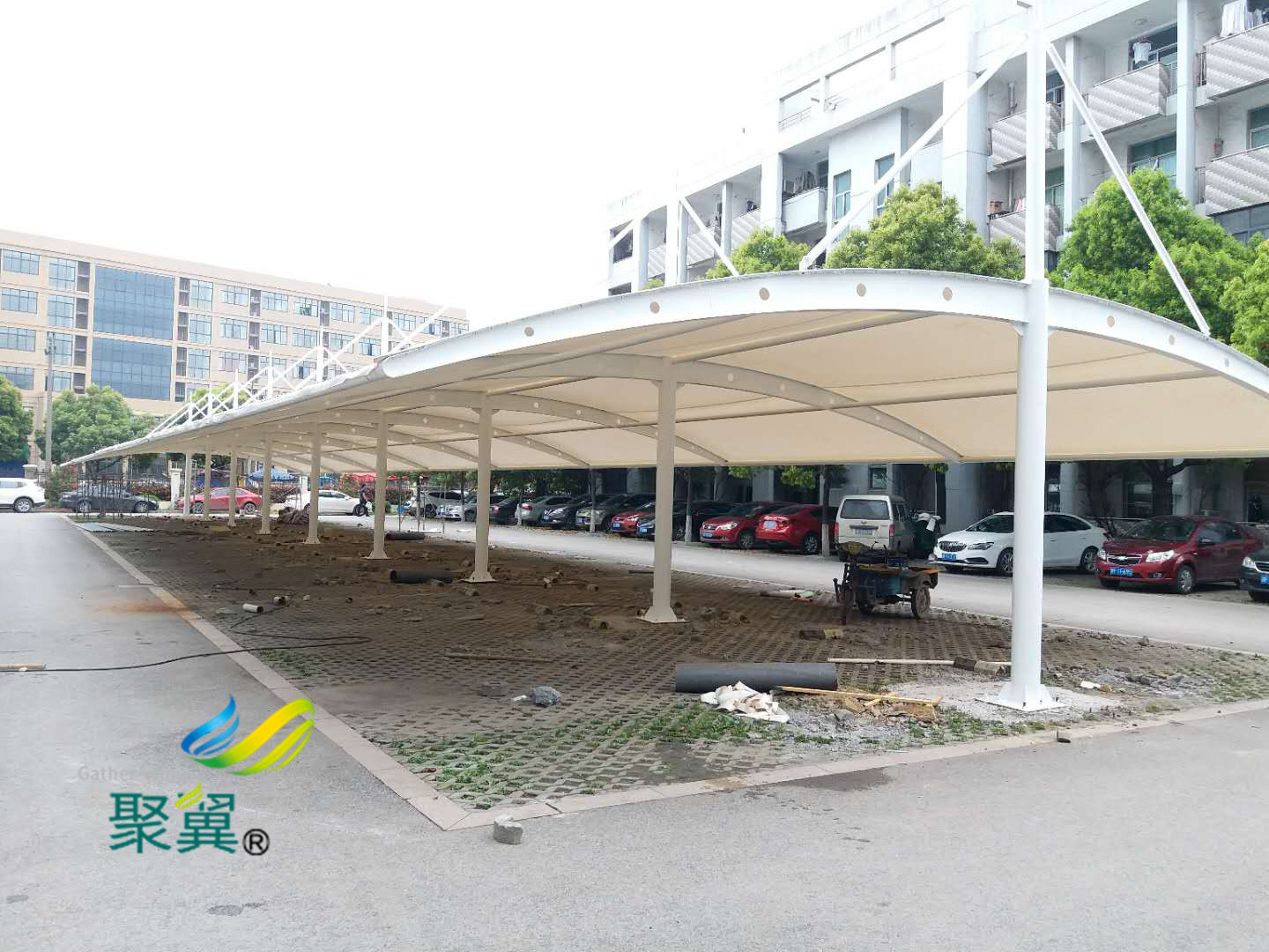 膜結構汽車停車棚品牌公司及規模較大的膜結構公司,還會有工程施工環節的嚴密管理及優秀的施工管理人員。一項工程倘若沒有一個出色的施工管理人員,即使有好的材料和好的施工人員,也不可能會有高質量的工程。膜結構汽車停車棚施工過程本身是一個復雜的過程,涉及的工種多,各工種的交叉作業、工序的先后順序對保證施工質量都是至關重要的。公司管理所產生的費用自然也就反映在價格里,所以,施工管理也影響價格。