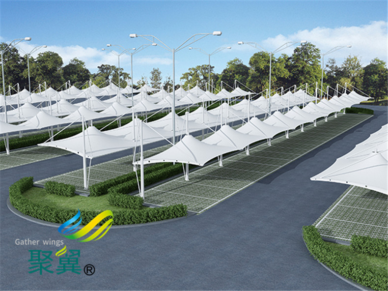 考慮膜結構遮陽雨棚PVC膜材膜材的抗拉強度與撕裂強度、自潔性、使用壽命以及適應各種氣候功能。