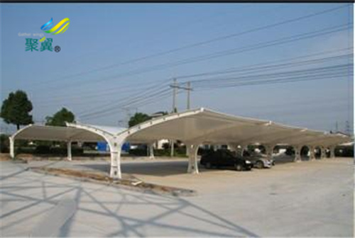 張拉膜結構車棚膜布特性:就算同材質的膜結構由于化學成分的不認同,厚度,可清洗性,伸展性各有不同,假如經濟允許可以一味求高,但一般情況下根據自己實際需求選擇。