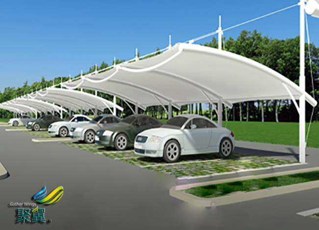 1,保證膜結(jié)構(gòu)車棚膜面有足夠的曲率,以獲得較大的剛度和美學(xué)效果;