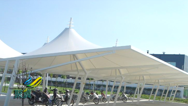 膜結(jié)構(gòu)車棚造型獨特,呈現(xiàn)富于變幻、新奇誘人的視覺效果,其運用范圍不僅限于體育或展覽建筑,還向房屋及景觀建筑等各個方面擴展。