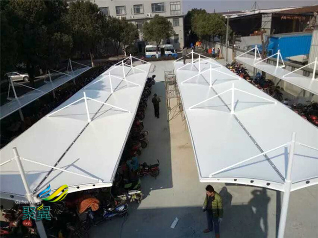 許有人會問,膜結構車棚有什么特別的嗎?只要不了解膜結構的人才會這樣問,膜結構的曲面多變性能夠讓膜結構車棚公司的設計師隨意刻畫造型。各種共同的修建也讓人充溢幻想的空間。  假如仔細留心你會發現,膜結構車棚在陽光的照射下,由膜掩蓋的那些修建物的內部會布滿天然漫射光,星光熠熠的感覺,無強反差的著光面與陰影的差異,把室內的空間視覺環境開闊諧和。