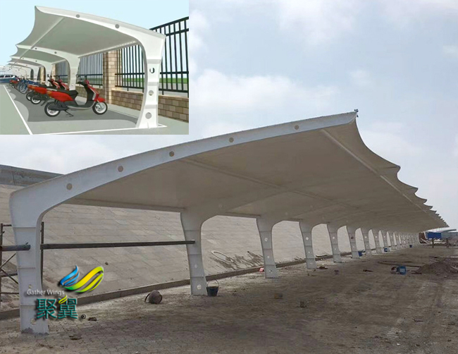 膜結(jié)構(gòu)車棚施工周期短,在膜結(jié)構(gòu)車棚膜工程中所有的加工和制作都是依照設(shè)計(jì)在工廠中完成,而在現(xiàn)場只進(jìn)行安裝作業(yè),相比傳統(tǒng)的膜結(jié)構(gòu)車棚建筑施工周期,幾乎快樂一倍。