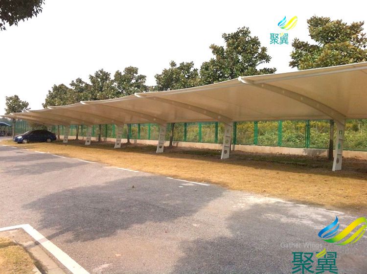 汽車遮陽棚用于公園停車遮陽,人性化的設計為公園增添一抹更加美麗動人的視覺沖擊。聚翼汽車遮陽棚還適用于:廣場、收費站、體育場、健身中心、游樂中心、小區、展覽中心等。