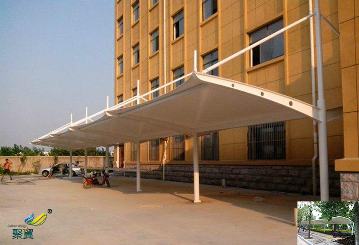 1、車棚作用:具有遮陽、擋雨、實用、美觀的作用?! ?、車棚適用范圍:學校、商業、體育館、工廠、政府機構等。  3、車棚可選材質:彩鋼板,陽光板,耐力板,潔光板,夾芯板、膜結構等。詳情歡迎撥打4008-613-119.