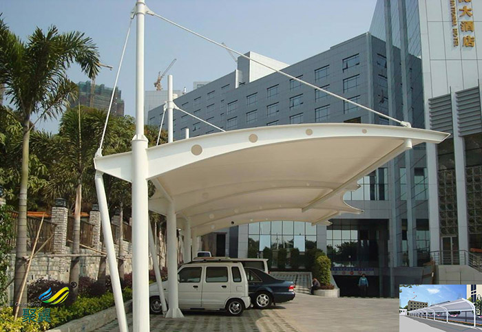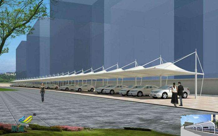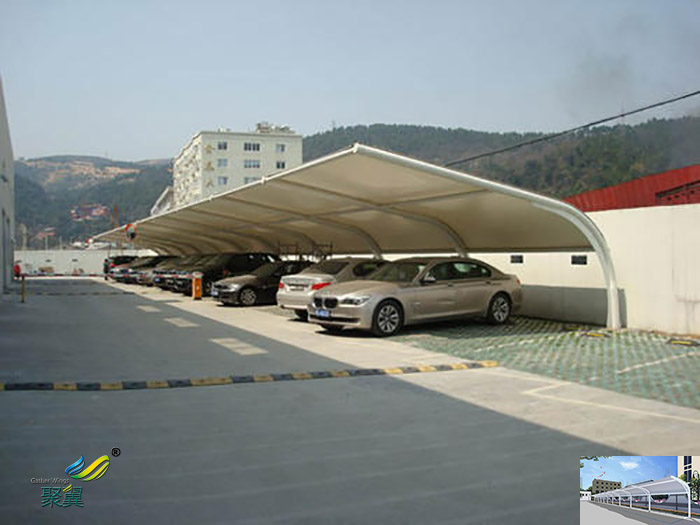 設計膜面造型時,應采用較大的膜面坡度,并使膜面排水路徑便捷。根據工程所在地的降雨情況在膜面上施加相應的豎向荷載,檢查變形后的膜面等高線圖;如在高點以外的部位出現近似圓形或橢圓形的區域,應修改膜面的形狀。張拉時,膜面的預張力需達到設計預張力水平;松弛的膜面要及時進行二次張拉;發生膜面積水情況要及時人工協助排水,并采取相應的補救、修改措施。怎么有效提高膜結構車棚工程質量。