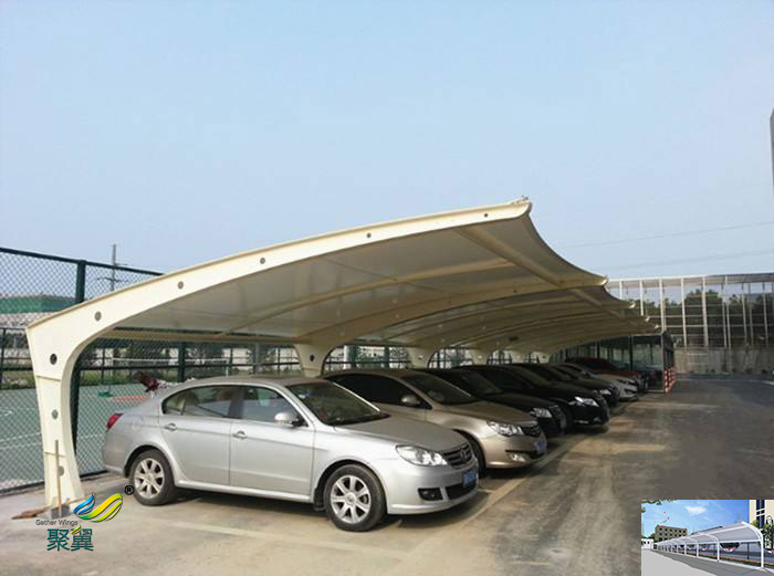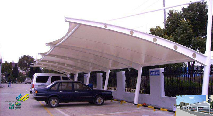 膜結構車棚的膜面應盡量減少可燃物體的靠近。應嚴格按建筑設計防火規范的要求設置相應的消防設施。施工方盡可能采用不可燃PTFE圖層覆蓋材料。