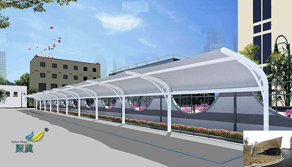 停車場的規劃和建設成為現代城市規劃的重要組成部分,變的越來越重要。膜結構輕巧、別致的造型在停車場及候車廳的建設中擔當了重要角,除了滿足防風雨、防日曬等基本功能外,并有較好的標識招攬效果,展現了人們個性化的一面。