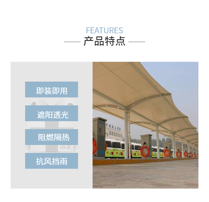 • 上海膜結構車棚公司加工公交站膜結構充電樁停車棚價格
